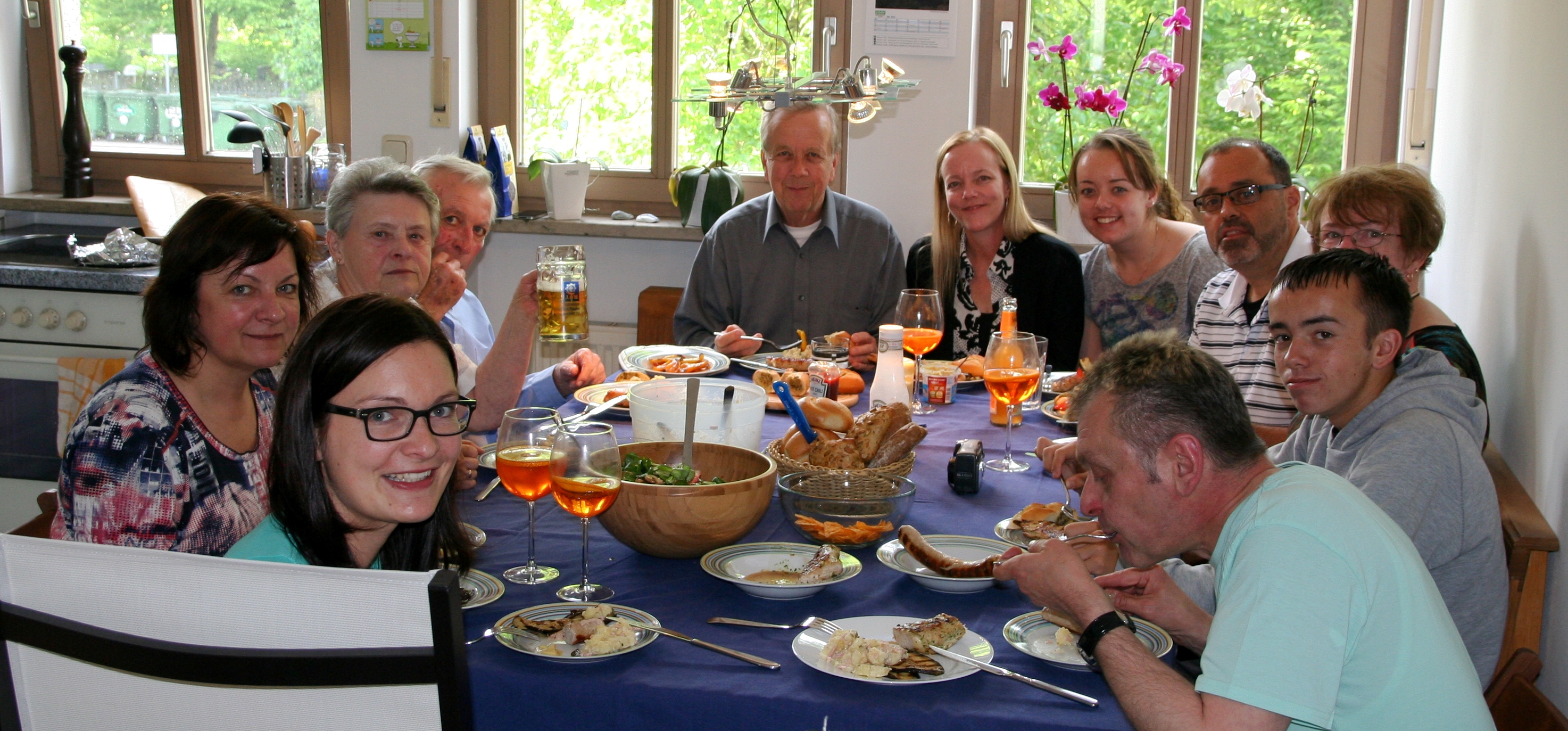 One of the sweetest moments of my life took place on that Thursday, as we gathered in the living room before dinner. A quick visual roll-call confirmed that everyone was present: Sue (our student, the bride) and Max (her husband-to-be), Sabine (Sue’s mother) and her parents, Karl and Hanna (Oma and Opa – Sue’s grandparents), Uncle Ingo (Sabine’s brother), Ray and Bea (dubbed Sue’s American grandparents – my mom and dad), Britton and Joffrey (Sue’s sister and brother – my children), Dallas (‘Papa Dallas’ in Sabine’s words – my husband), and me (‘second mother of the bride’ as I was teasingly referred to by my kids).
